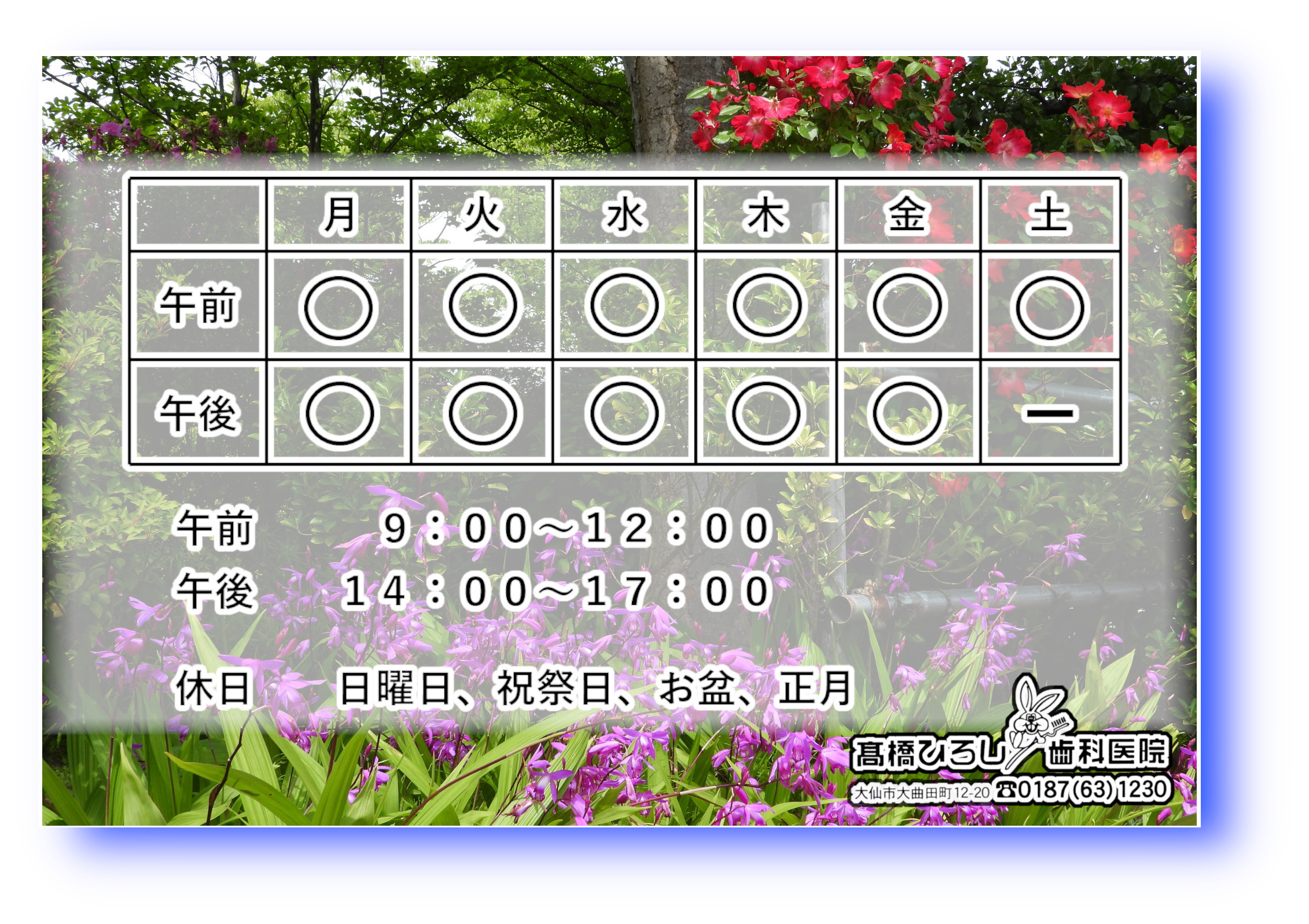 なお、日曜および祝日は休診とさせていただいております。